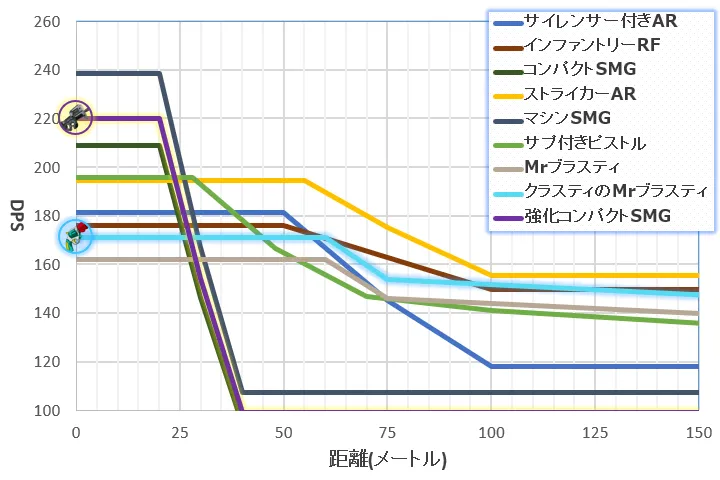 | 項目 | マシンSMG | サプ付きピストル | コンパクトSMG | 強化型コンパクトSMG |