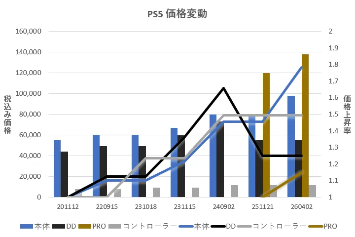 割と前代未聞で値上げが凄いPS5。