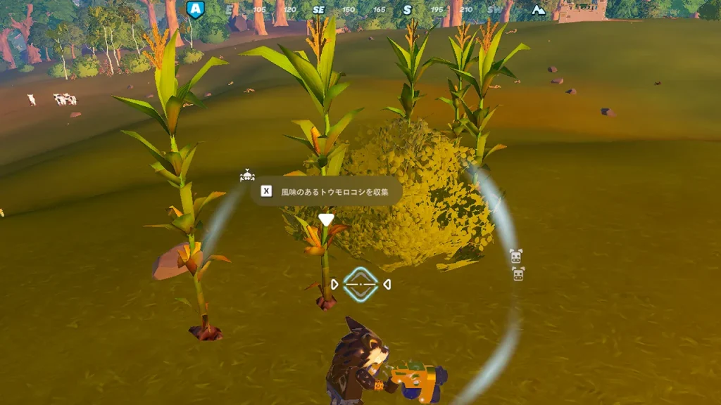 《風味のあるトウモロコシ》を食べると、一時的にスタミナの上限値が増加します。加工して料理にすると、スタミナの増加量が増えていきます。