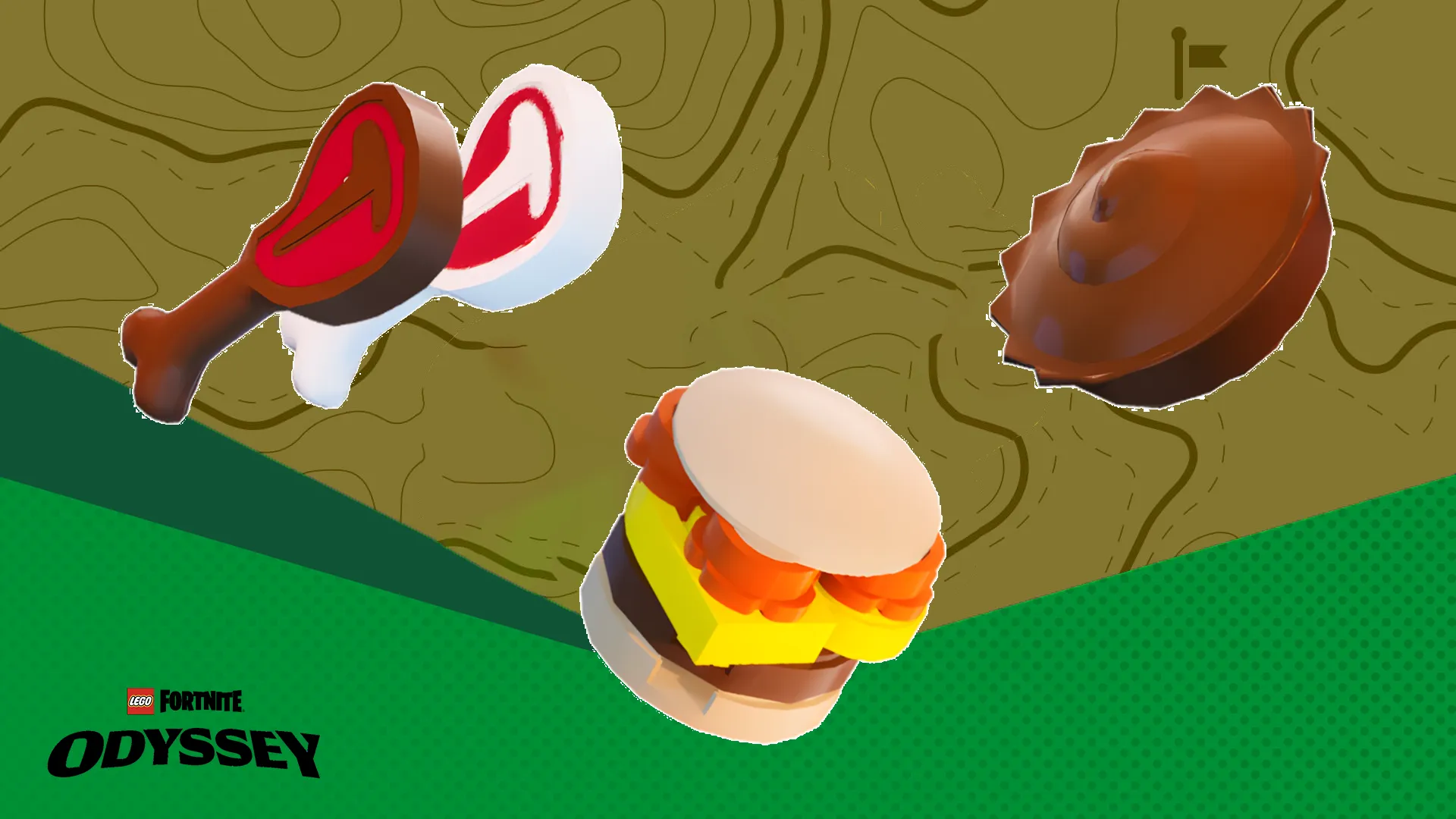 《頑強の肉》はレゴフォートナイトの初期から登場している食材です。加工先の食品も含め、一時的な追加HPを獲得する特殊効果を持ちます。