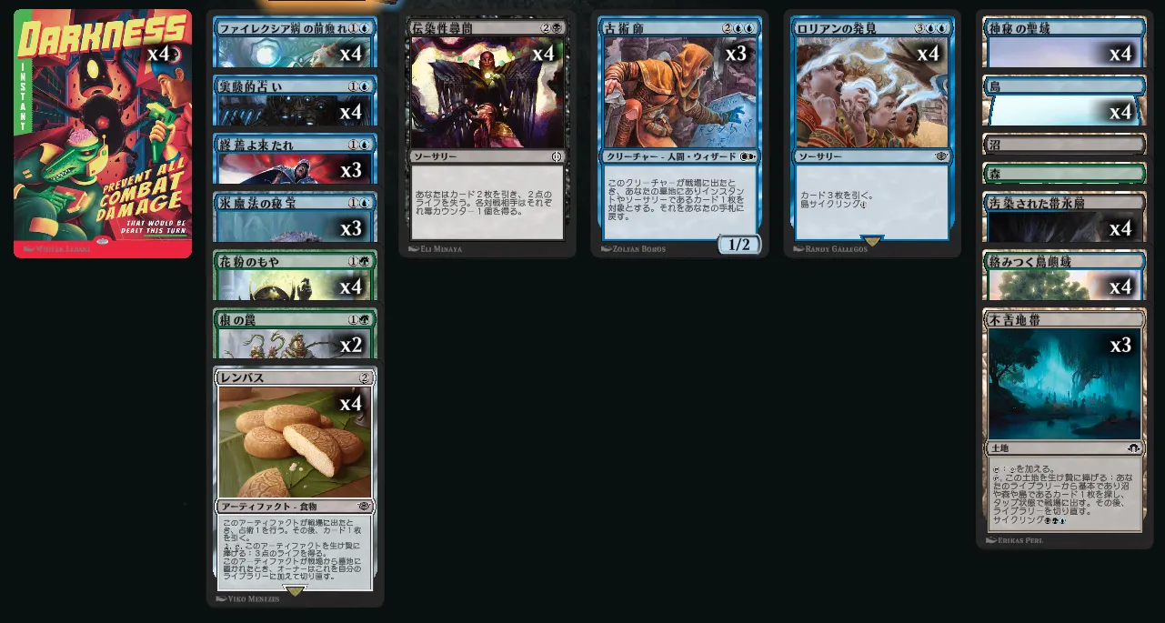同じく通常のパウパーだと禁止されている《命取りの論争》も使えるため、《物読み》と合わせて強烈なドローエンジンを形成しています。息切れしにくく、安定性も高いです。