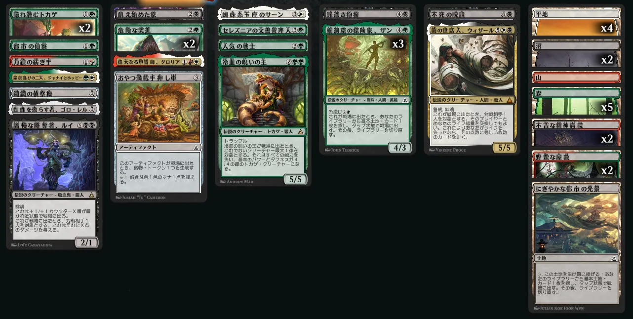 緑軸であれば、対抗色でもデッキになることはあるものの、基本的には友好色でデッキを組みたいです。