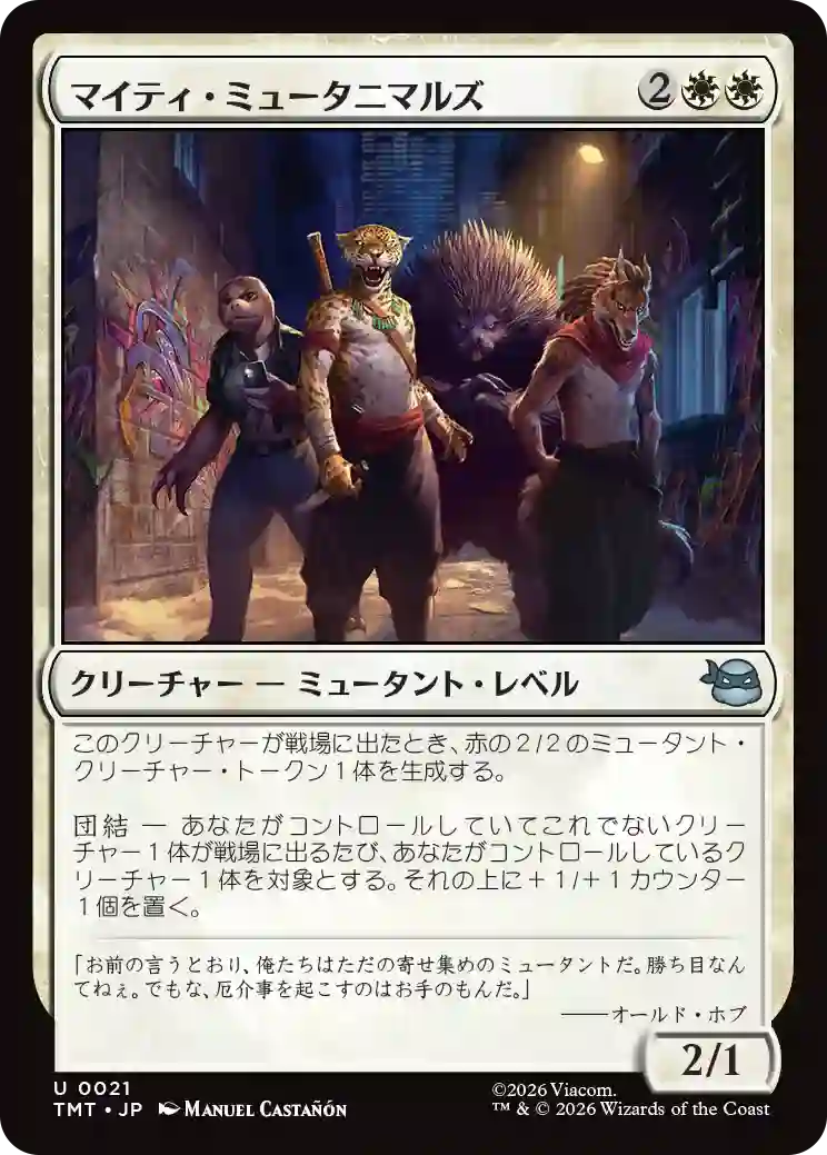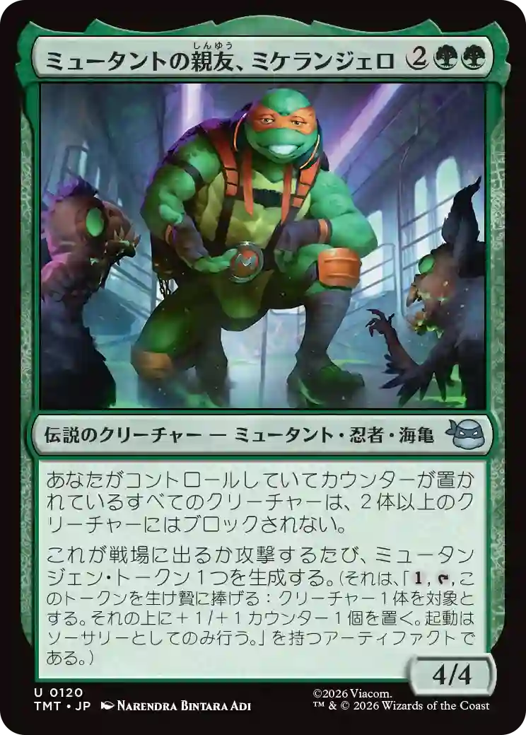 《マイティ・ミュータニマルズ》の時点で強いのに、それがレアになったかのような伝説のクリーチャーです。