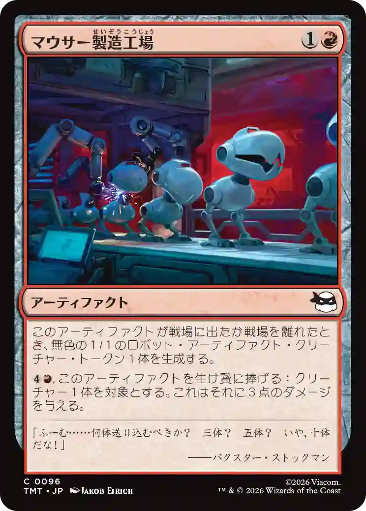 このアーティファクトが戦場に出たか戦場を離れたとき、無色の1/1のロボット・アーティファクト・クリーチャー・トークン1体を生成する。 {(4)(R)}, このアーティファクトを生け贄に捧げる:クリーチャー1体を対象とする。これはそれに3点のダメージを与える。