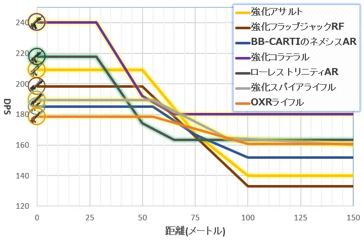 撃ち合いになったときには、実質25%のダメージ増と同じなので、対人225DPS相当の強さになります。そうなるとアサルトの中では上位層になるので、正面切っての殴り合いにはかなり強いです。