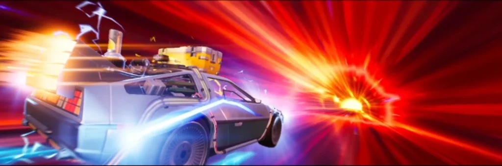 フォートナイトに登場するのは映画の設定どおり、タイムマシンに改造された《デロリアン》で、原作どおりに88マイルに到達するとタイムスリップの演出が入ります。