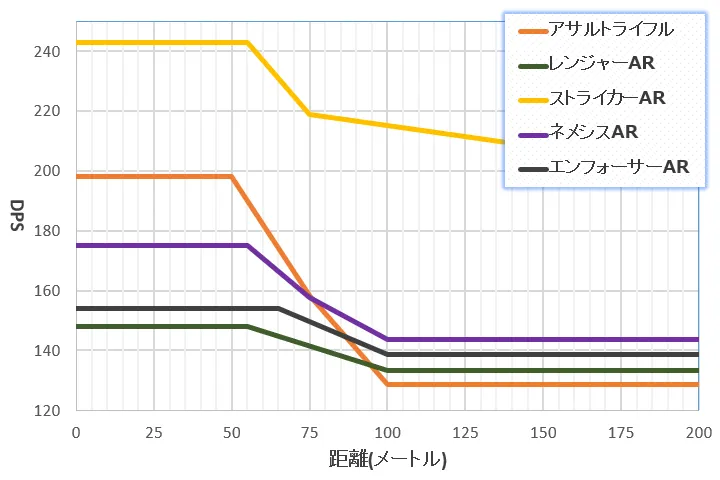 《ネメシスAR》には中距離で負けるものの、遠距離では減衰率の低さから優位性があります。