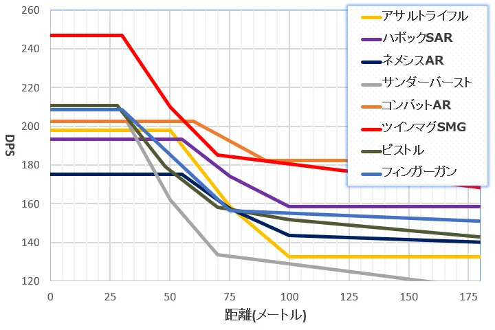 | 最小ダメージ | 29.4 (275m~) | 20.2 (275m~) | 34.5 (70m~) | 31.5 (275m~) | |||||||||||||||||||||||||||||||||||||||||||||