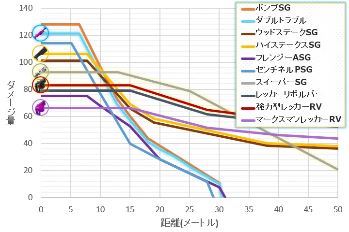 最小ダメージ | 26.5 (35m~) | ||||||||||||