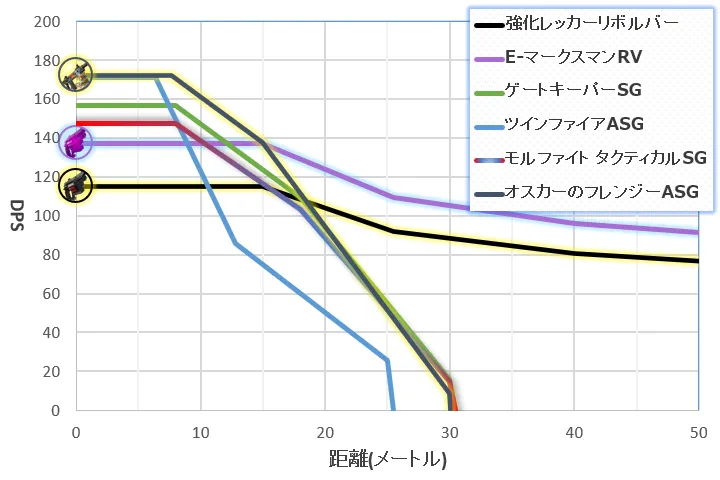 | 項目 | M-タクティカルSG | タクティカルSG | ゲートキーパーSG | E-マークスマン_レッカーリボルバー | ||||||||||||||||||||||||||||||