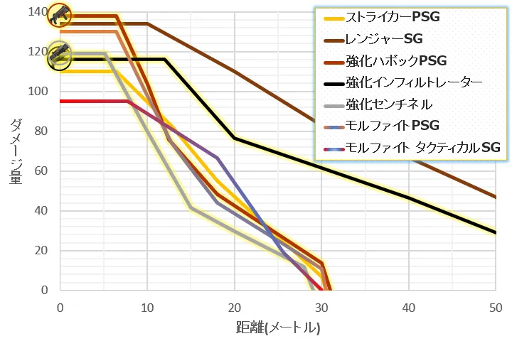 リロード環境では装弾数が少なすぎて辛さがあるものの、射撃性能では《M-タクティカルSG》等を凌駕しており、より優れたダメージ期待値を発揮します。