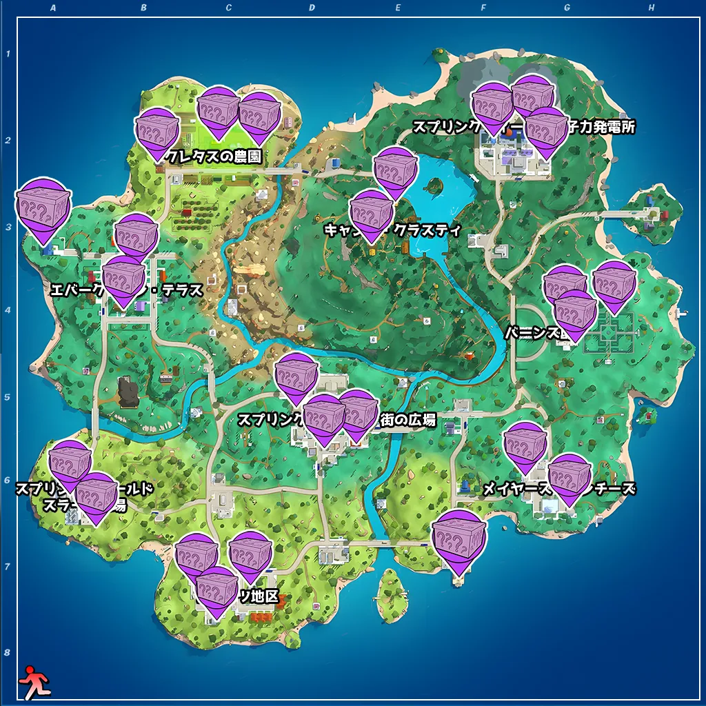 各地の名前付きロケーションに2~3個のボックスがありますが、一部そうではない場所にも存在します。各ボックスは出現率50%です。