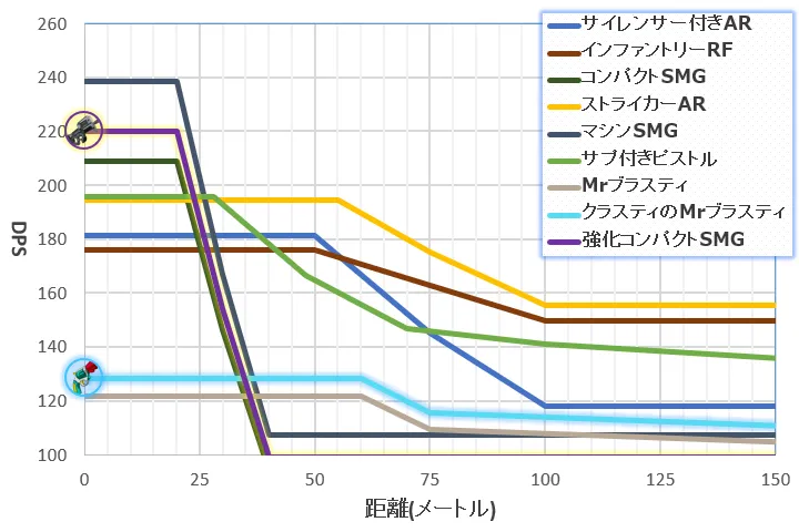 命中率がお互いに上昇するような距離ではDPSの差が絶対なので、遮蔽物を利用して単発で使うなどの工夫が必要になります。