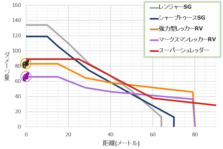 《スーパーシュレッダー》はスナイパーと銘打っているだけあって弾が届く距離は優れているものの、精度面では《レンジャーSG》を下回っています。