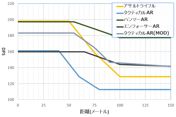 《タクティカルAR(MOD)》の方が継戦能力はあるものの、有利が取れる距離はないと思います。