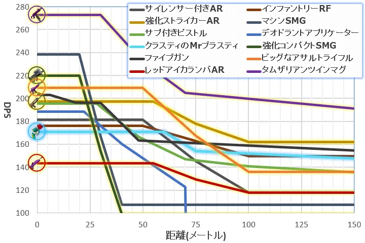 | 中ダメージ | 16.8 (50m~) | 14.0 (30m~) |