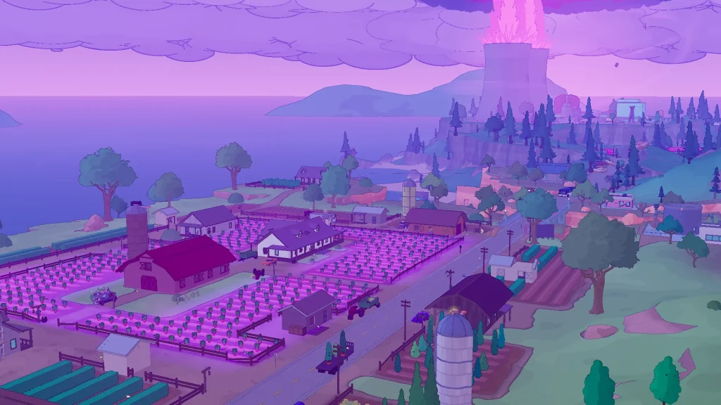その水をポンプで汲み上げて使っていた農場は、元から緑色に発光していた危ない畑でしたが、更に汚染が進んで悲惨な状況になりました。