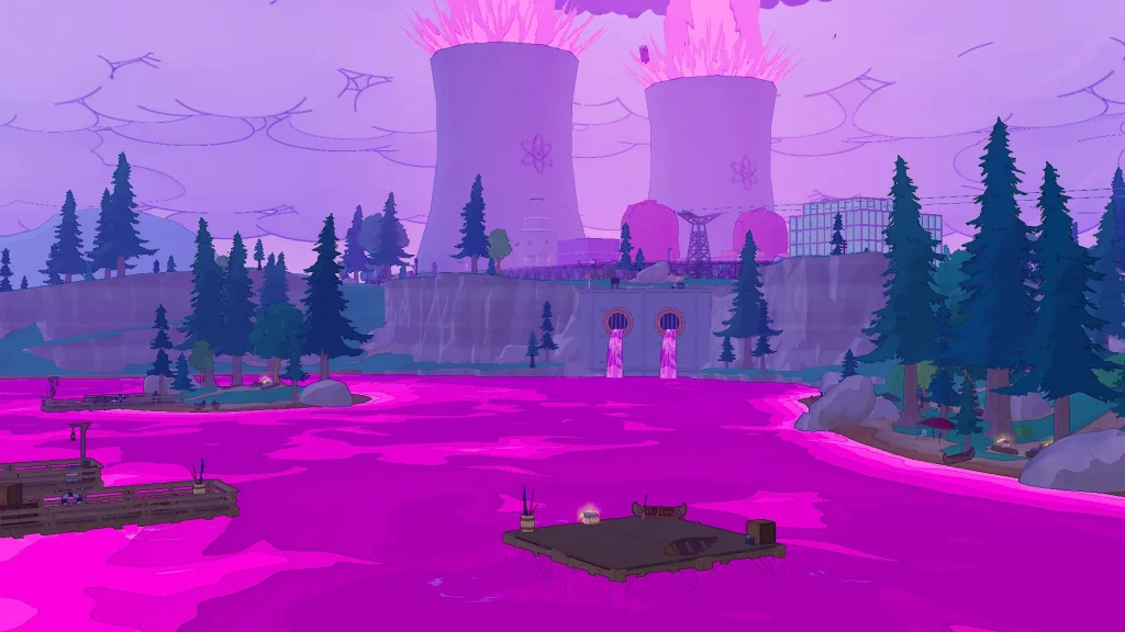 島にあった原子力発電所で人身事故が発生し、工業排水が垂れ流しになっていた湖が紫色に染まりました。反対側が海なのに、何故島内の湖に流すのか。これが分からない。