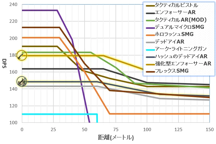 ADSしたときには与ダメージが10増えるので、DPSについては腰だめ撃ちとほぼ同じ。基本的にはADSした方が良い場合が多いです。
