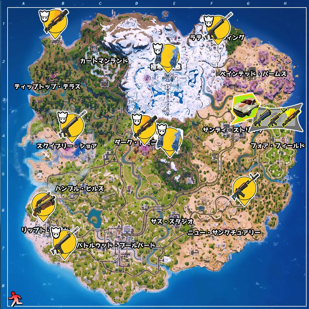 現在のところ分かっているミシックなどの配置図は以下のとおり。