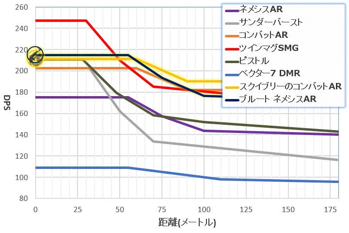 前シーズンにおける《MK7 AR》や《デッドアイAR》の弱体化後と同じなんですが、それらと比べるとDPSがかなり落ちています。建築ありでは強くなった部分もありますが、ゼロビルドでは純粋に弱くなった《デッドアイAR》だと思います。
