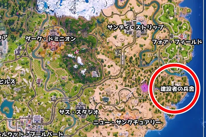 また、マップ南東に名前付きロケーション《建設者の兵舎》が追加されています。