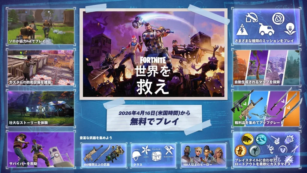 気が付いたらバトロワに取って代わられていた本家本元のフォートナイトこと「世界を救え」が無料化しました。