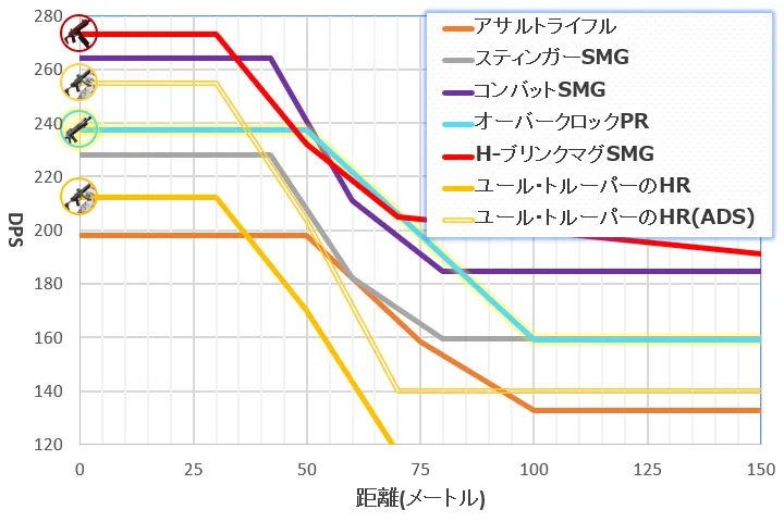中ダメージ13.5 (50m~)17.6 (60m~)16.8 (50m~)
